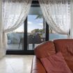 La zona living è baciata dalla luce naturale grazie alle ampie finestre, con una vista spettacolare sul mare, in particolare quella che conduce al balcone e al giardino sottostante. Il balcone è attrezzato per permettervi di godere di pasti all'aperto e di momenti di relax immersi nella vista mozzafiato.
