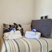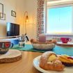 La zona giorno è molto spaziosa e colorata, arredata con mobili nuovi e un un comodo divano letto con smart TV dove i vostri bimbi potranno distrarsi su YouTube mentre cucinate le vostre prelibatezze o potrete intrattenervi sulle vostre serie TV preferite su Netflix o Prime Video prima di addormentarvi.