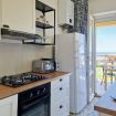L’appartamento è stato rinfrescato con gusto, mantenendo i pavimenti in marmo originali e introducendo arredi colorati e vivaci, ideali per vivere un’atmosfera allegra e rilassata. Dispone di due camere matrimoniali molto ampie complete di armadi, cassettiere e comodini , entrambe climatizzate e abbellite da complementi di arredi in perfetto stile marinaro. Il bagno è piccolo ma molto grazioso e funzionale, completo di tutto il necessario come anche la doccia e la lavatrice.