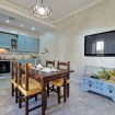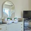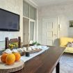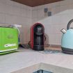 Il soggiorno è ampio e luminoso, dotato di un angolo cottura fornito di tutti gli accessori necessari per cucinare, compresa la lavastoviglie. Potrete gustare i vostri pasti comodamente sul tavolo per sei persone, rilassarvi sul divano letto matrimoniale davanti alla grande smart TV o sorseggiare un caffè fatto con la macchina a cialde. A disposizione anche un bollitore ed un tostapane.