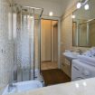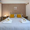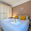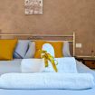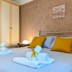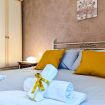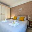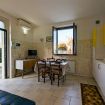L'appartamento è accessibile tramite un piccolo cortile sul lato dello stabile. Al suo interno si presenta composto da una sala con tavolo da pranzo, cucina completa e divano letto. A seguire un breve corridoio dalla quale si accede al bagno completo con doccia, bidet, wc, lavatrice e lavandino e alla camera da letto servita di un letto matrimoniale e un capiente armadio a parete, oltre a due comodini ai lati del letto. L'appartamento è dotato di un condizionatore e inoltre di finestre con doppio vetro insonorizzate che donano all'ambiente molta luce durante il giorno e riservatezza e tranquillità di notte.