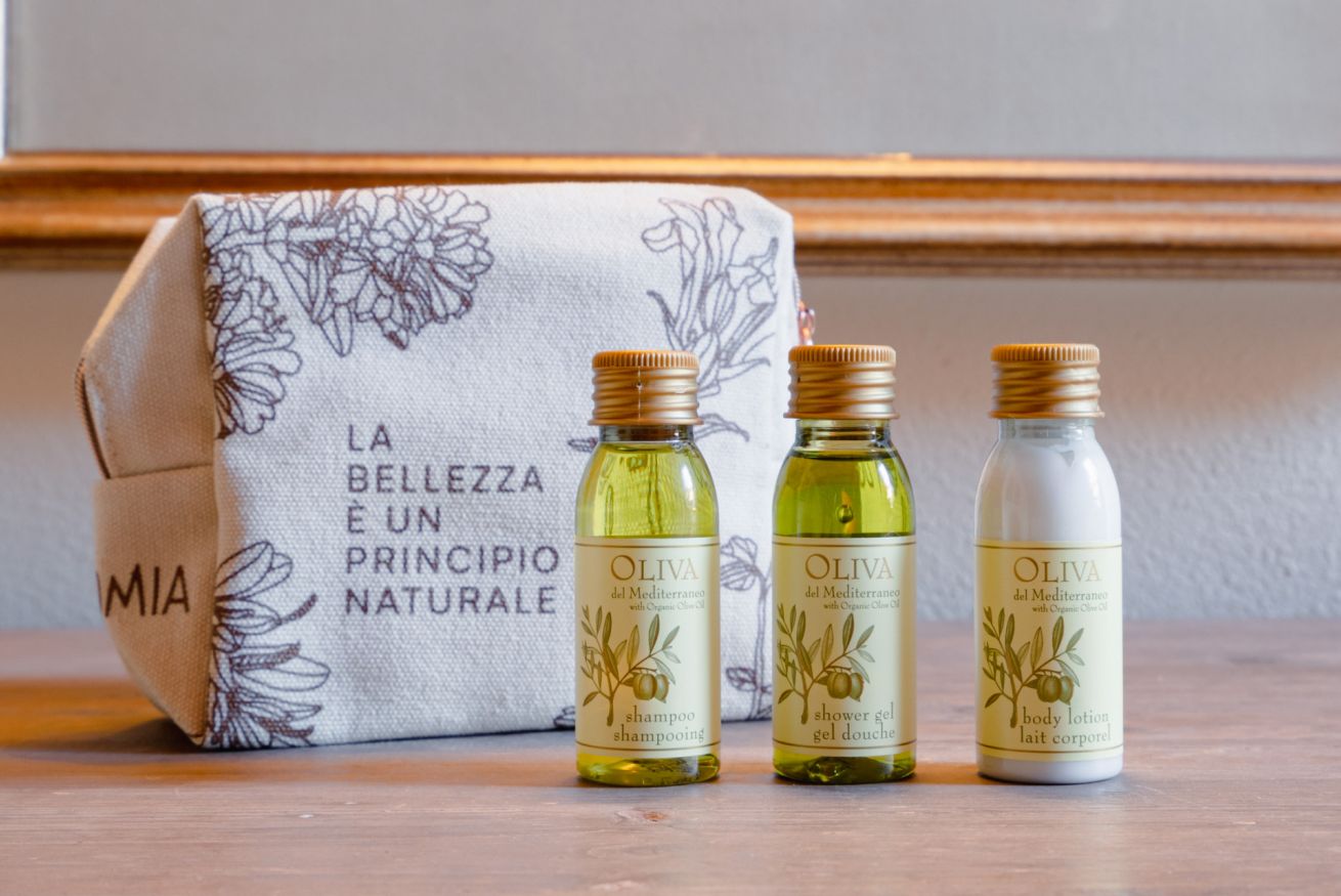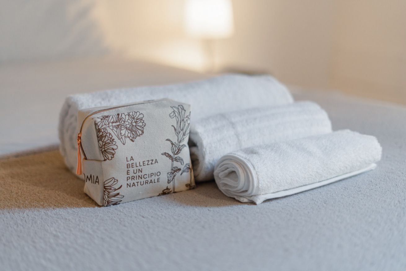 Ogni nostro ospite troverà a sua disposizione un set di morbidi asciugamani e un Welcome Kit di benvenuto (shampoo, Gel Doccia e Lozione Corpo).