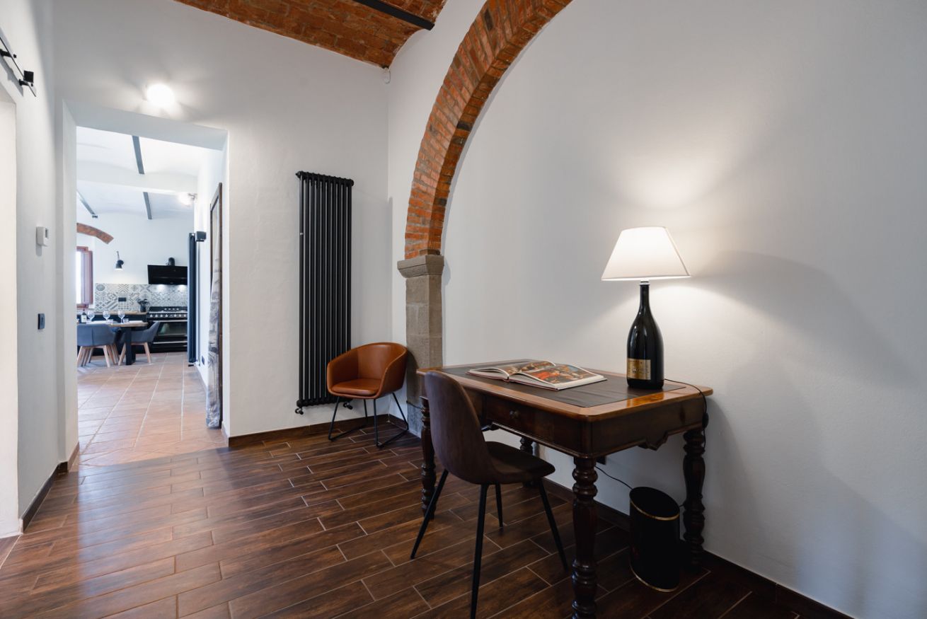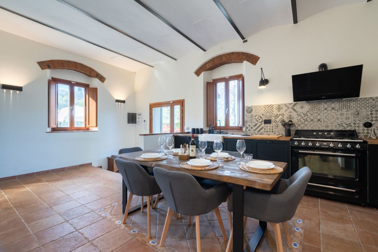 Gli spazi interni, completamente attrezzati, con finiture di pregio, sono arredati con gusto e stile: pavimenti in cotto, e mobili artigianali riflettono l'autenticità della tradizione toscana. Amerai vivere circondato dal silenzio senza rinunciare al comfort e alla tecnologia.