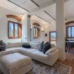La scelta di tonalità chiare sulle pareti crea una sensazione di spaziosità e luminosità. Il pavimento in cotto dona un tocco di calore all’ambiente.