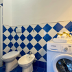 Il bagno moderno e funzionale completa l'esperienza, con una spaziosa cabina doccia per rinfrescarvi dopo una giornata al sole.