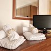 La zona notte è composta da due camere da letto, una matrimoniale e l'altra doppia con la possibilità di unire i letti singoli. Il bagno, completo di tutti gli elementi essenziali per la vostra igiene quotidiana, vi accoglie con sanitari completi, una spaziosa cabina doccia, una lavatrice e un lavabo.