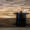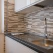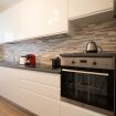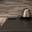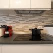 Una cucina grande e attrezzata con tutto ciò che serve: forno, fornelli a induzione, lavatrice, lavastoviglie, forno a microonde, bollitore, tostapane e una macchina da caffè NESPRESSO. Include anche una pratica mensola rialzata, ideale per una colazione veloce prima di una giornata di sole e mare.