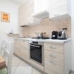 L'ampio openspace della zona living è composto da una cucina dotata di tutti gli elettrodomestici tra cui: forno, fornelli, forno microonde, tostapane, bollitore elettrico, servizio piatti e posate, utensili da cucina e pentolame vario ed una pratica macchina del caffè NESPRESSO (con cialde).