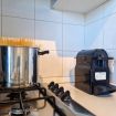 L'interno dell'appartamento è luminoso e moderno, con un accogliente soggiorno dotato di un comodo divano letto per ospiti aggiuntivi. La cucina completamente attrezzata con frigorifero, freezer, bollitore, tostapane e macchina del caffè Nespresso vi permetterà di preparare i vostri pasti preferiti in tutta comodità.