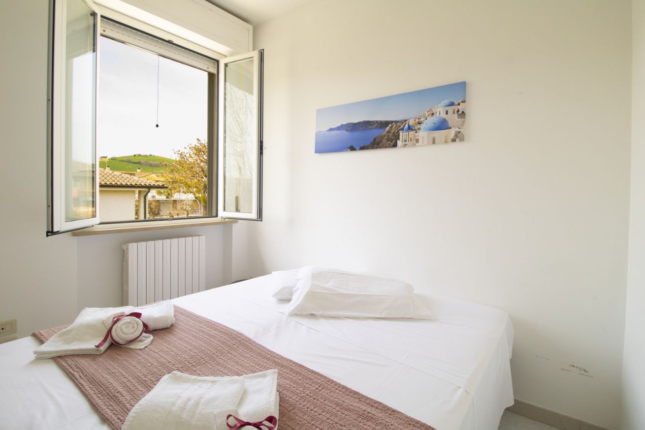 Attraversando il corridoio principale, si accede alla zona notte, composta da due camere matrimoniali. Entrambe dispongono di letti queen size, cabina armadio e comodini, la camera padronale ha una porta finestra che porta su un balcone privato mentre l'altra ha una finestra che si affaccia sulle colline marchigiane.