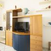 Il soggiorno, pensato per offrirvi la massima comodità. Qui vi attendono un ampio divano, una credenza, un mobile TV.
