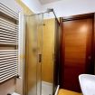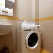 Dal soggiorno, un piccolo disimpegno vi condurrà al bagno completo con doccia e lavatrice. Qui potrete rilassarvi e godervi una doccia rigenerante, e grazie alla presenza della lavatrice, potrete viaggiare leggeri e fare il bucato comodamente durante il vostro soggiorno.